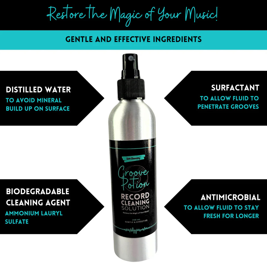 Keep your vinyl records in pristine condition with our "Groove Potion" — 250mL Vinyl Record Cleaning Fluid, paired with a high-quality microfiber cloth. Designed for both light and deep cleaning, this gentle yet powerful formula lifts dirt, dust, and oils from your records, improving sound quality and protecting your collection.